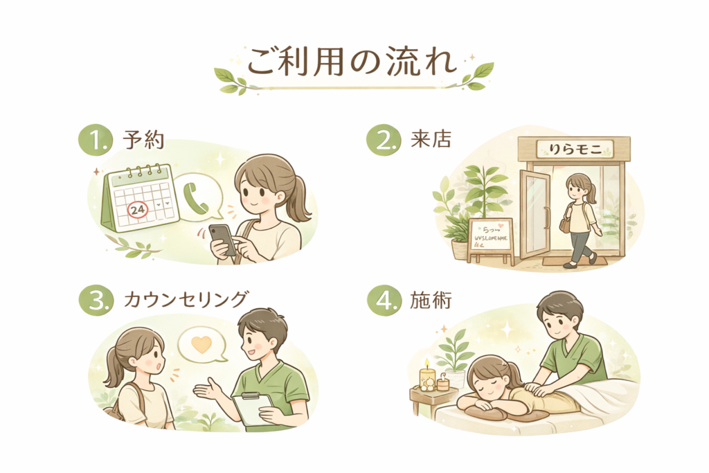予約後に日程調整をさせて頂き、予約時間の5分前にお越しください。